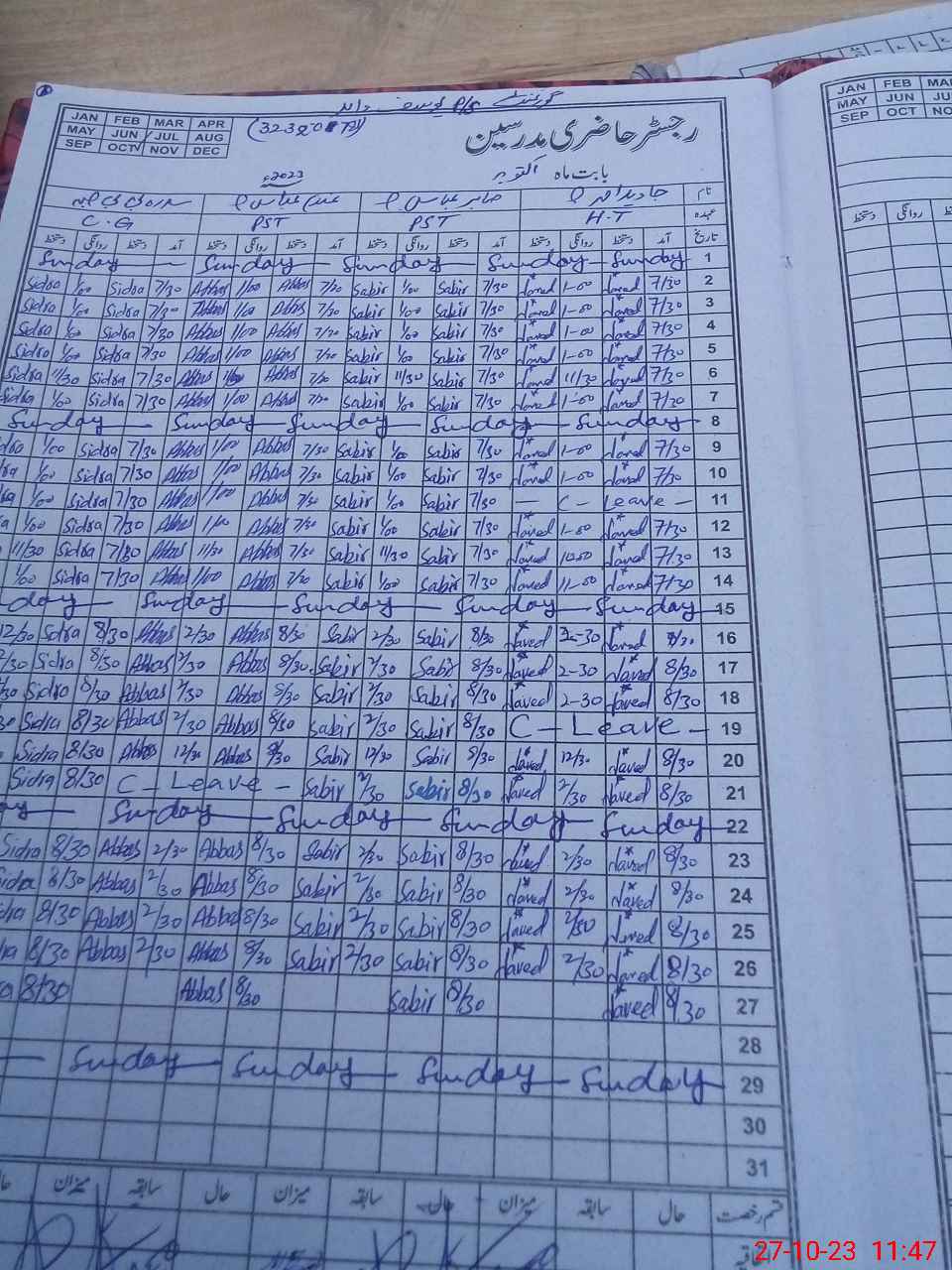 | CNIC | Full Name | Designation | R/C | Absence During Last Calender Month |