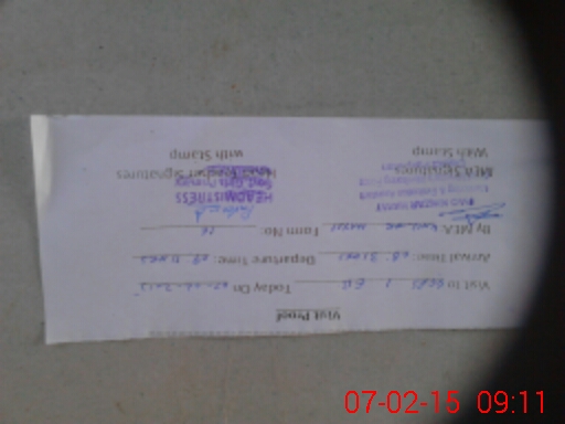 | Monitoring Date: 07-02-2015 | Start Time: 07-02-2015 08:30 AM | End Time: 07-02-2015 09:11 AM | Name of MEA: Kh**** Ha**** (R**** | |