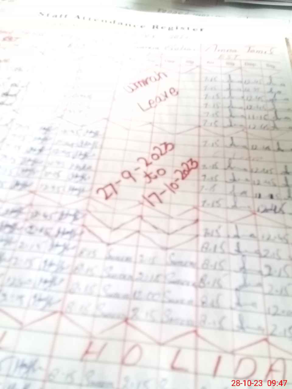 | Monitoring Date: 28-10-2023 | Start Time: 28-10-2023 09:33 AM | End Time: 28-10-2023 09:58 AM | Name of MEA: Ar**** Na**** | |