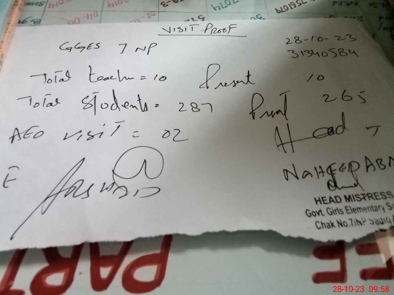 | EMIS Code: 31340584 | Name of School: GGES CHAK NO.7/NP | |||
