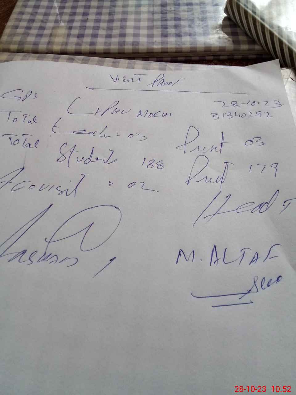 | Attendance Register | Head Teacher | MEA with School | Visit Proof |