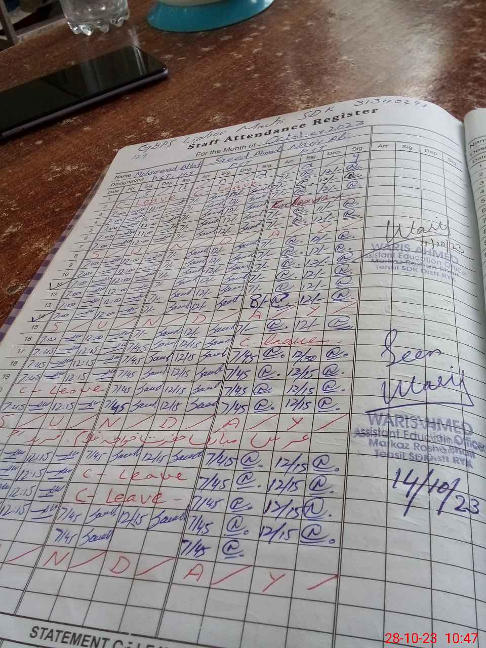 | CNIC | Full Name | Designation | R/C | Absence During Last Calender Month |