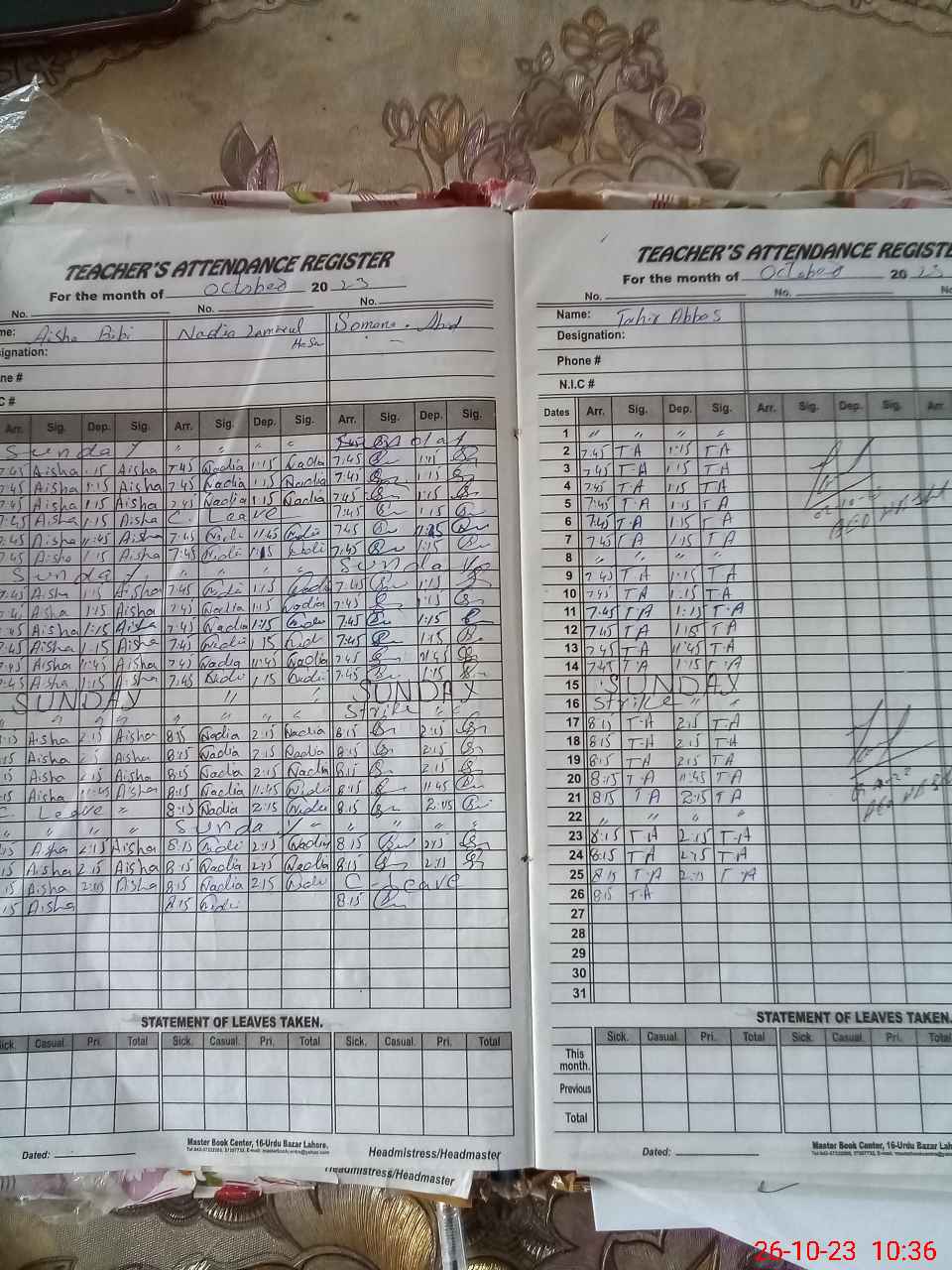 | Leave | Duty | Absent | Maternity | Medical | Ex- Pak |