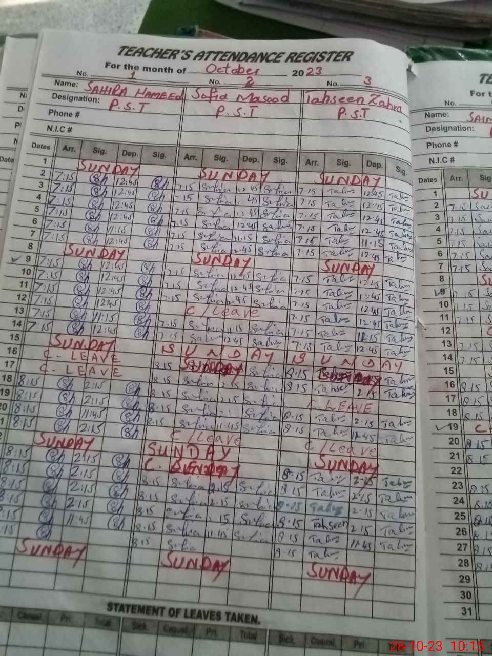 | Name: SA**** HA**** Designation: (School Headmaster's/Headmistress's) PST Head Phone/Cell Number: 03**** |
