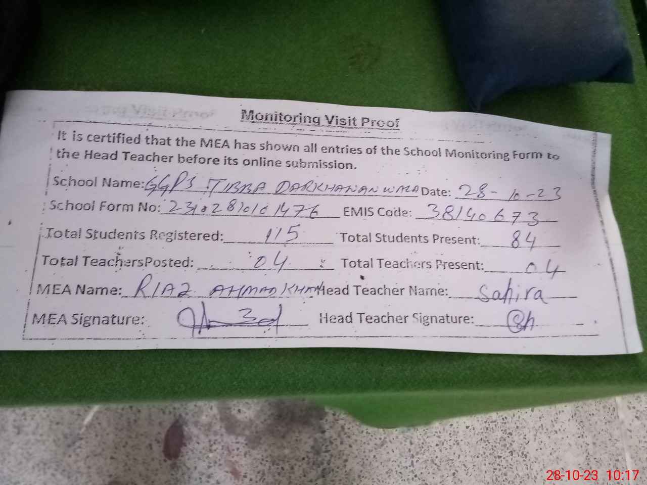 | EMIS Code: 38140673 | Name of School: GGPS TIBBA DARKHANAN WALA | |||