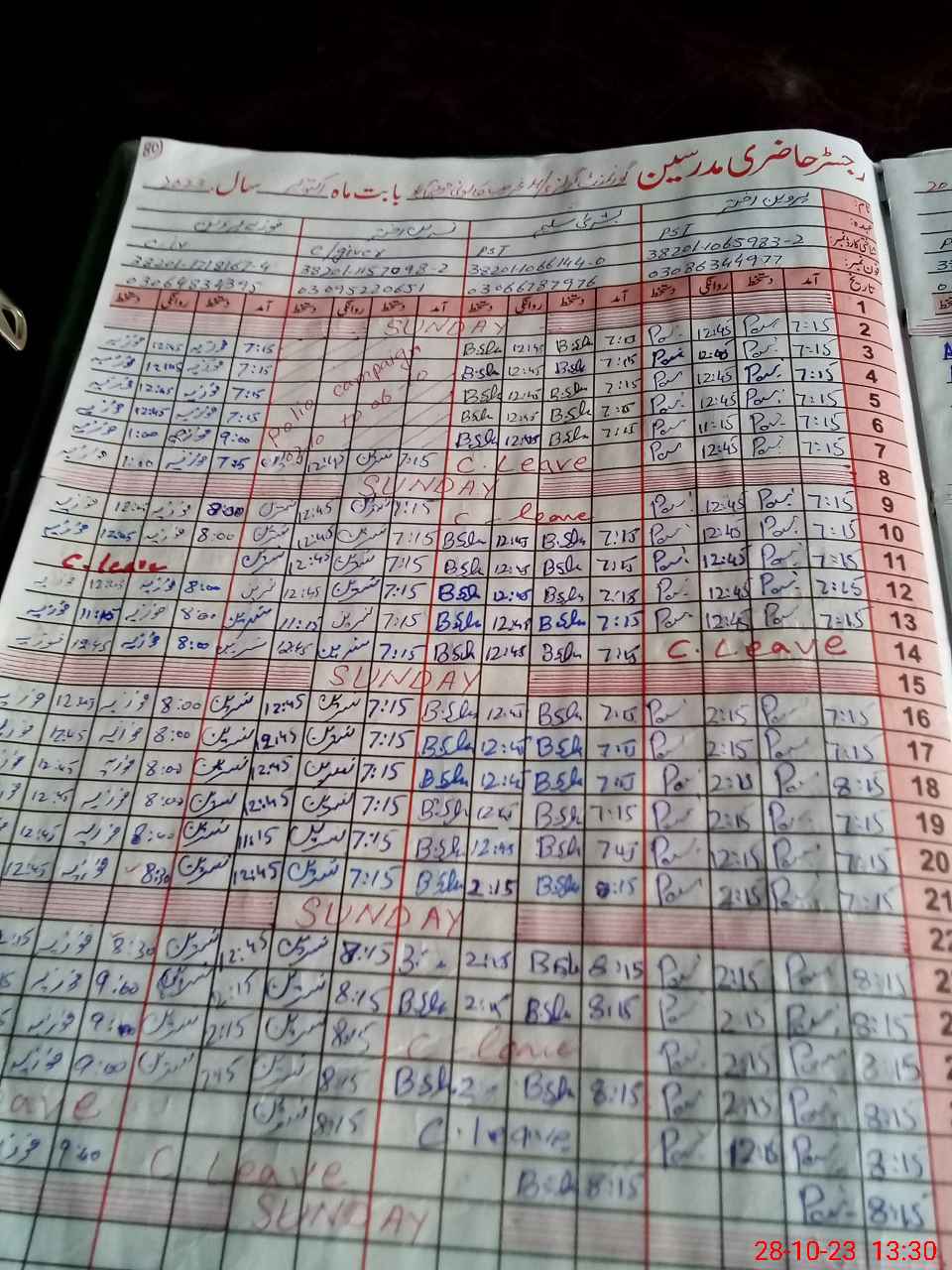 | CNIC | Full Name | Designation | R/C | Absence During Last Calender Month |