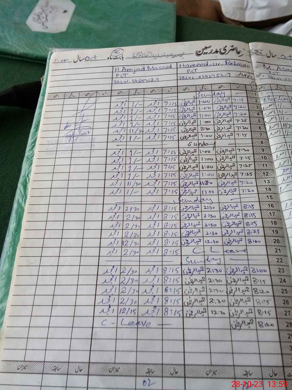 | CNIC | Full Name | Designation | R/C | Absence During Last Calender Month |