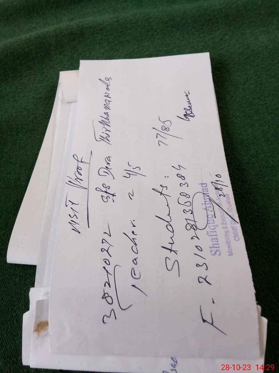 | Monitoring Date: 28-10-2023 | Start Time: 28-10-2023 01:45 PM | End Time: 28-10-2023 02:30 PM | Name of MEA: SH**** AH**** (R**** | |