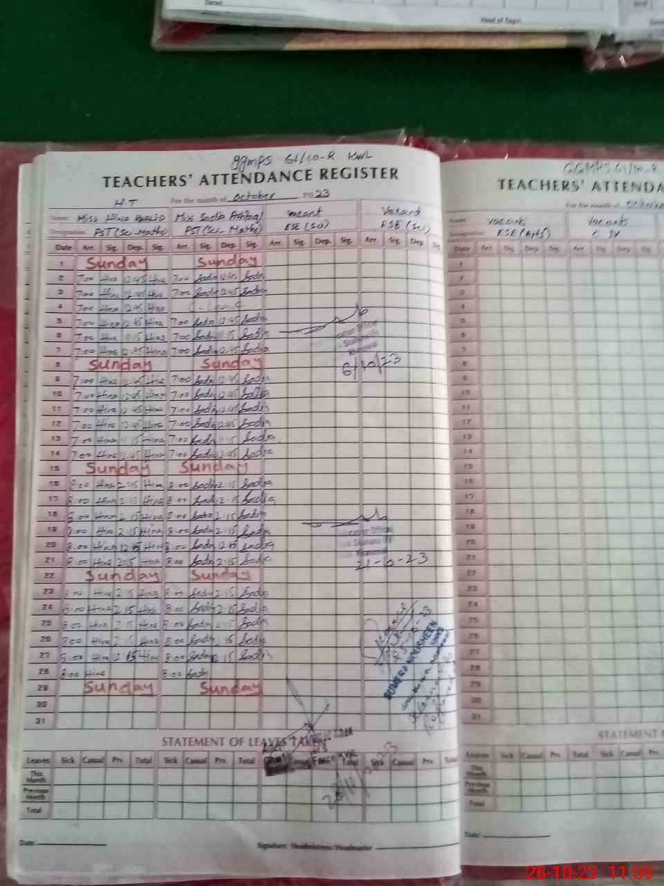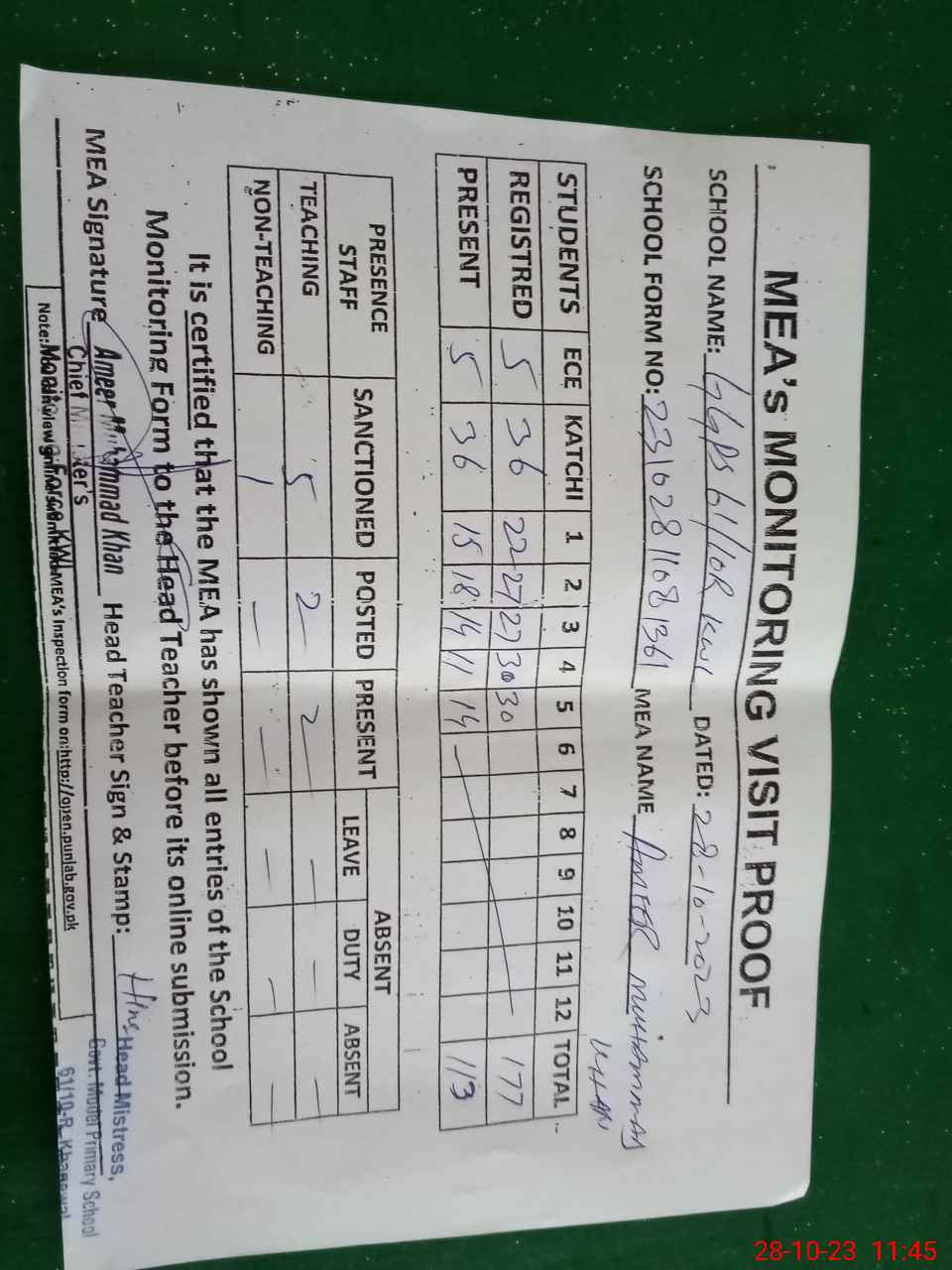 | Attendance Register | Head Teacher | MEA with School | Visit Proof |