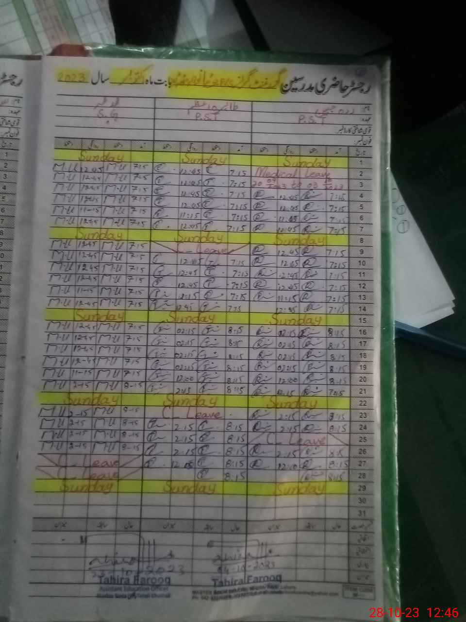 | Leave | Duty | Absent | Maternity | Medical | Ex- Pak |