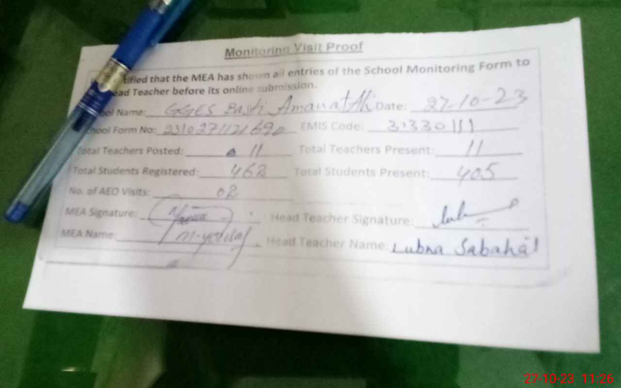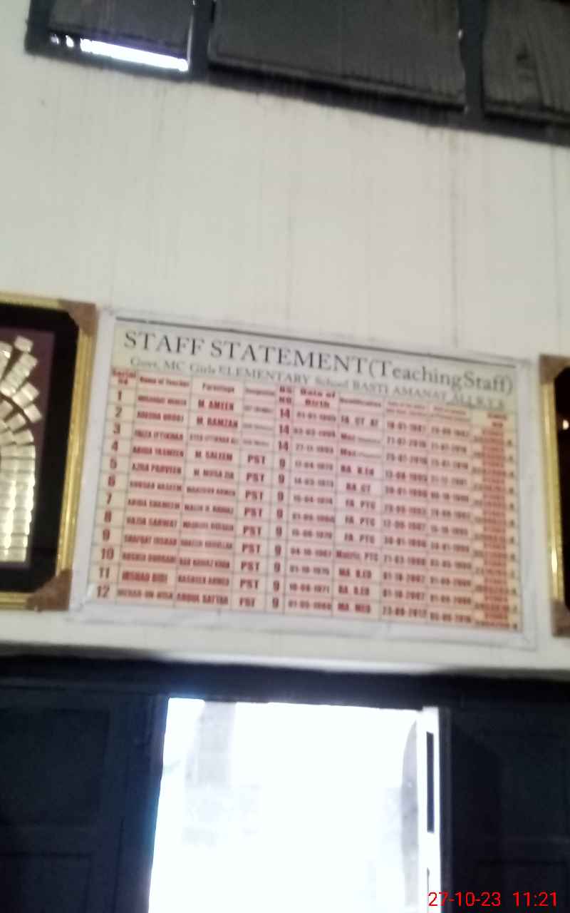 | EMIS Code: 31330111 | Name of School: GGES BASTI AMANAT ALI | |||