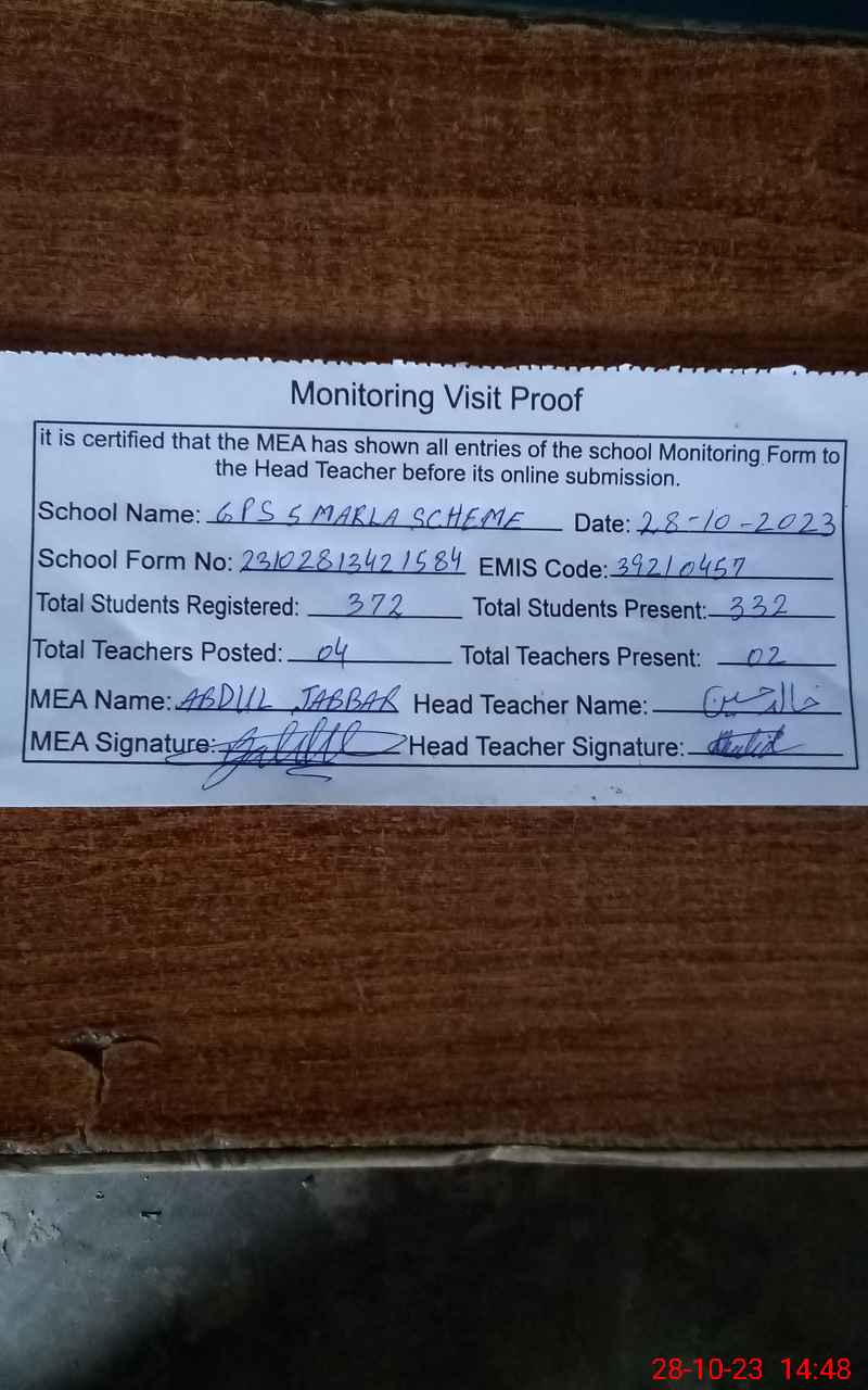 | EMIS Code: 39210457 | Name of School: GPS 5-MARLA SCHEME ADDA CHAK BEDI | |||