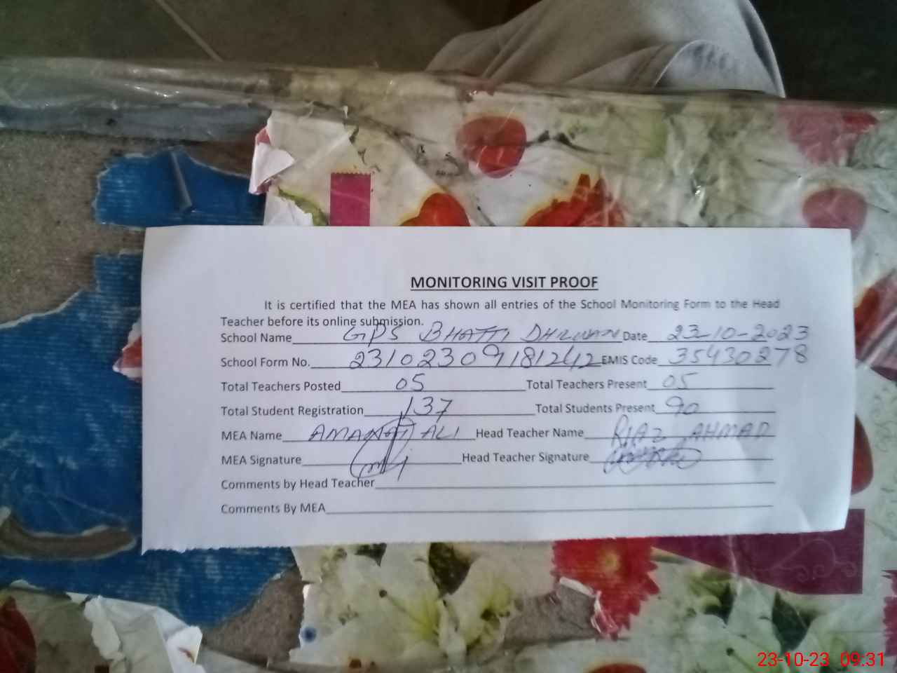 | EMIS Code: 35430278 | Name of School: GPS BHATTI DHILWAN | |||