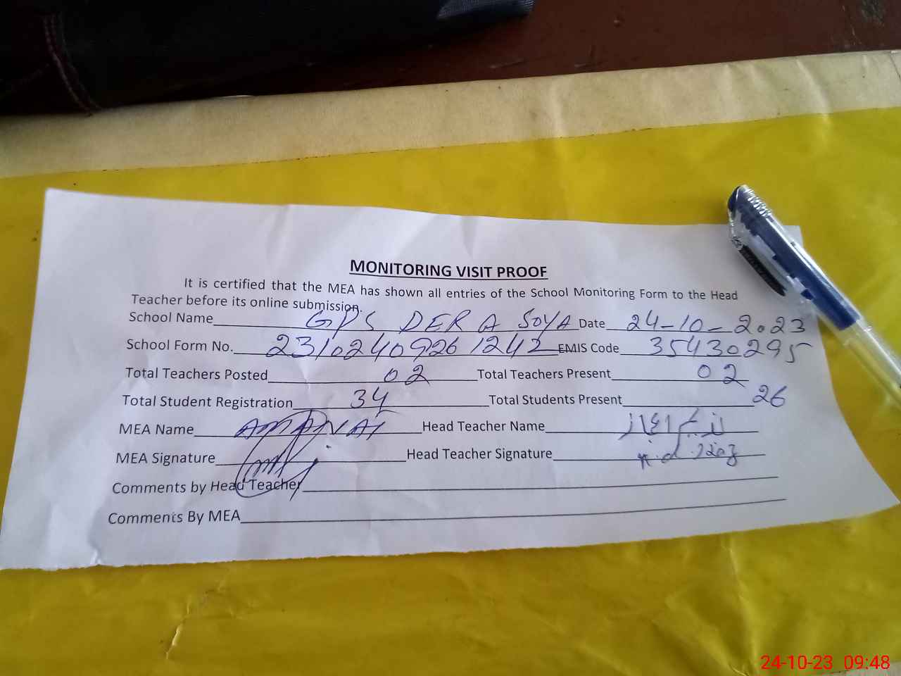 | EMIS Code: 35430295 | Name of School: GPS DERA SOIAN | |||