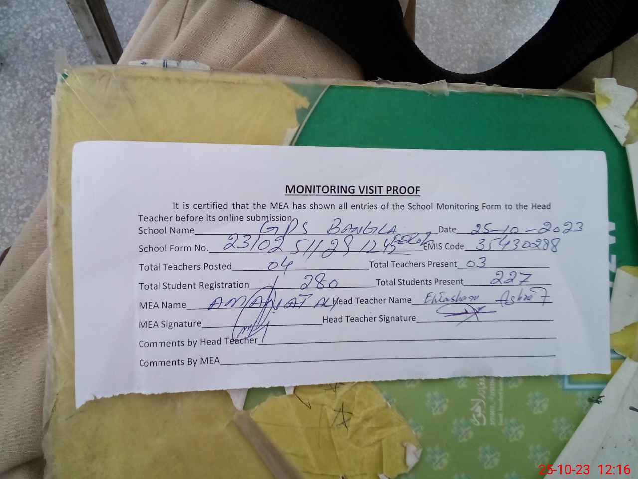 | EMIS Code: 35430288 | Name of School: GPS BANGLA FEROZ | |||