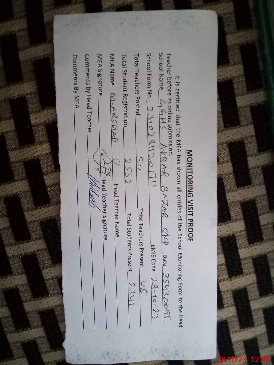 | EMIS Code: 35430095 | Name of School: GGHS MC MODEL AKBER BAZAR SHEIKHUPURA | |||