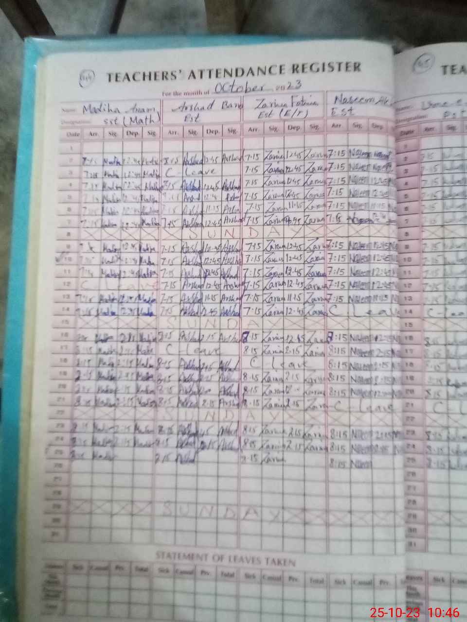 | Name: MA**** AN**** Designation: (School Headmaster's/Headmistress's) SST (Math) Phone/Cell Number: 03**** |