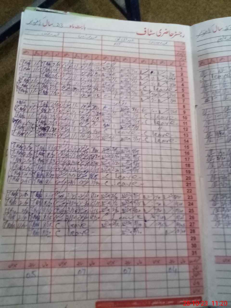 | CNIC | Full Name | Designation | R/C | Absence During Last Calender Month |