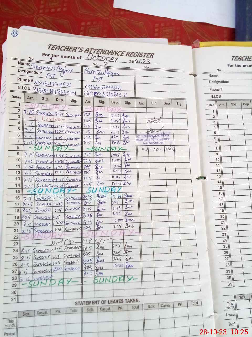 | Name: SA**** AS**** Designation: (School Headmaster's/Headmistress's) PST Phone/Cell Number: 03**** |