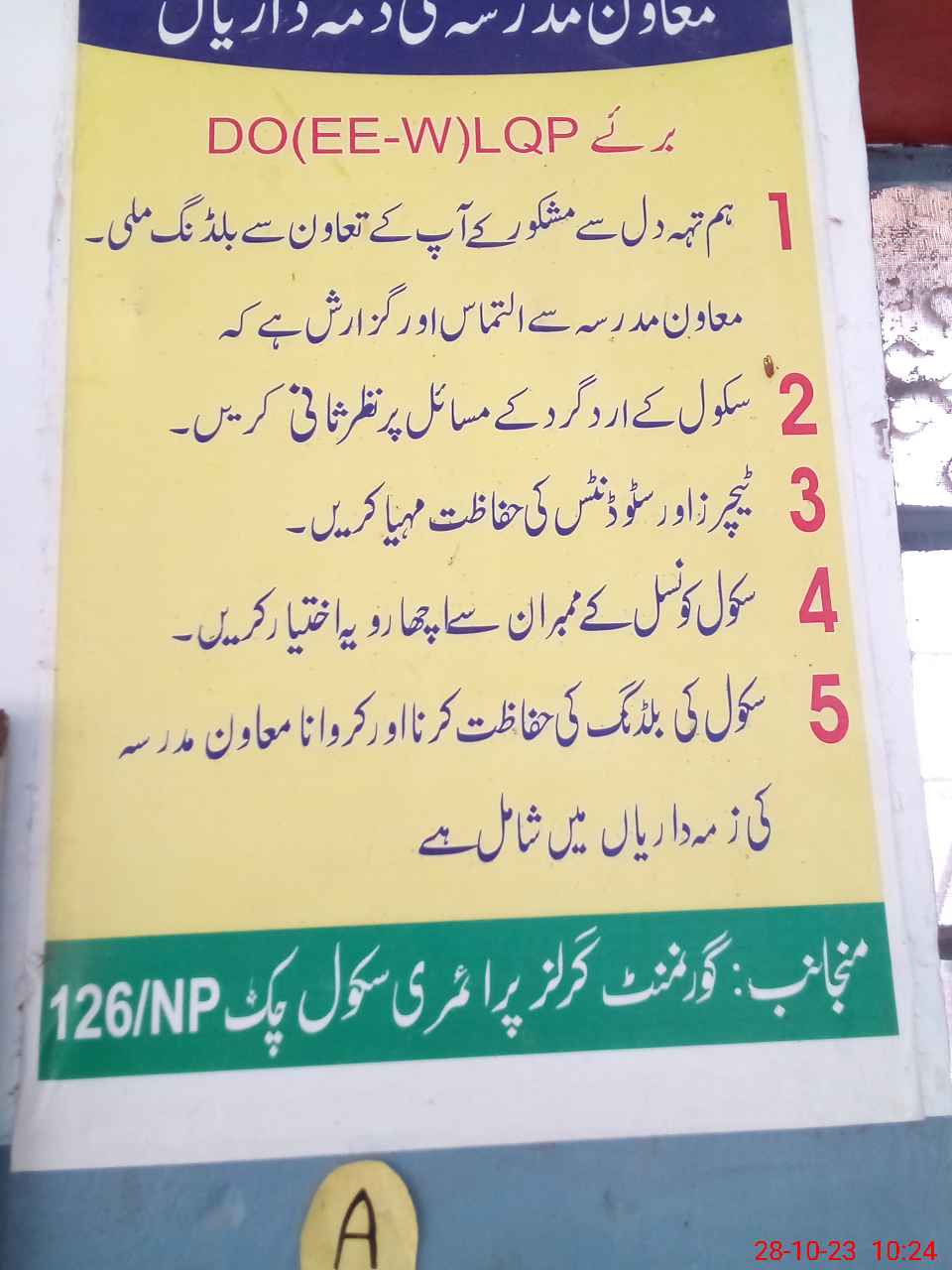 | EMIS Code: 31320644 | Name of School: GGPS CHAK 126/NP | |||