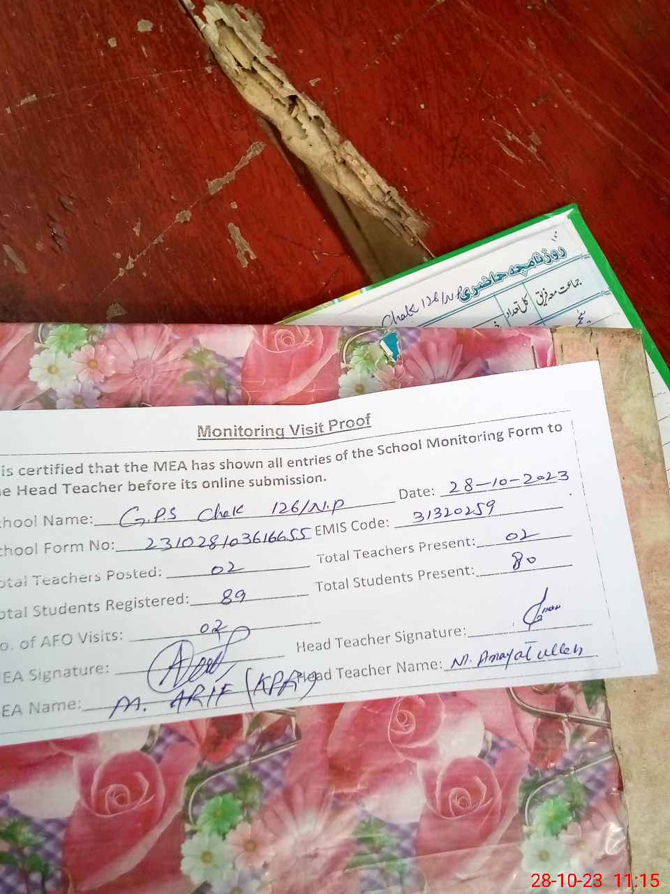 | EMIS Code: 31320259 | Name of School: GPS CHAK 126 NP | |||