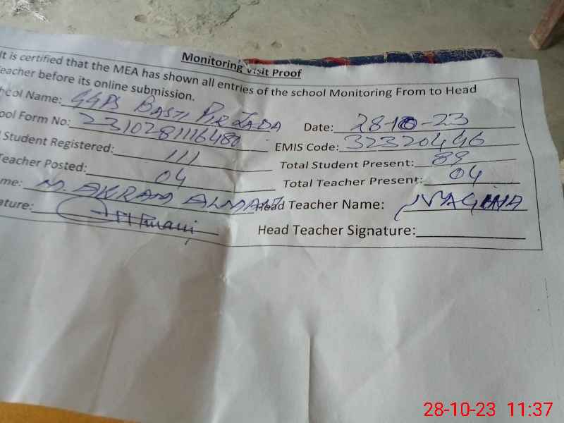 | EMIS Code: 32320446 | Name of School: GGPS BASTI PIRZADA | |||