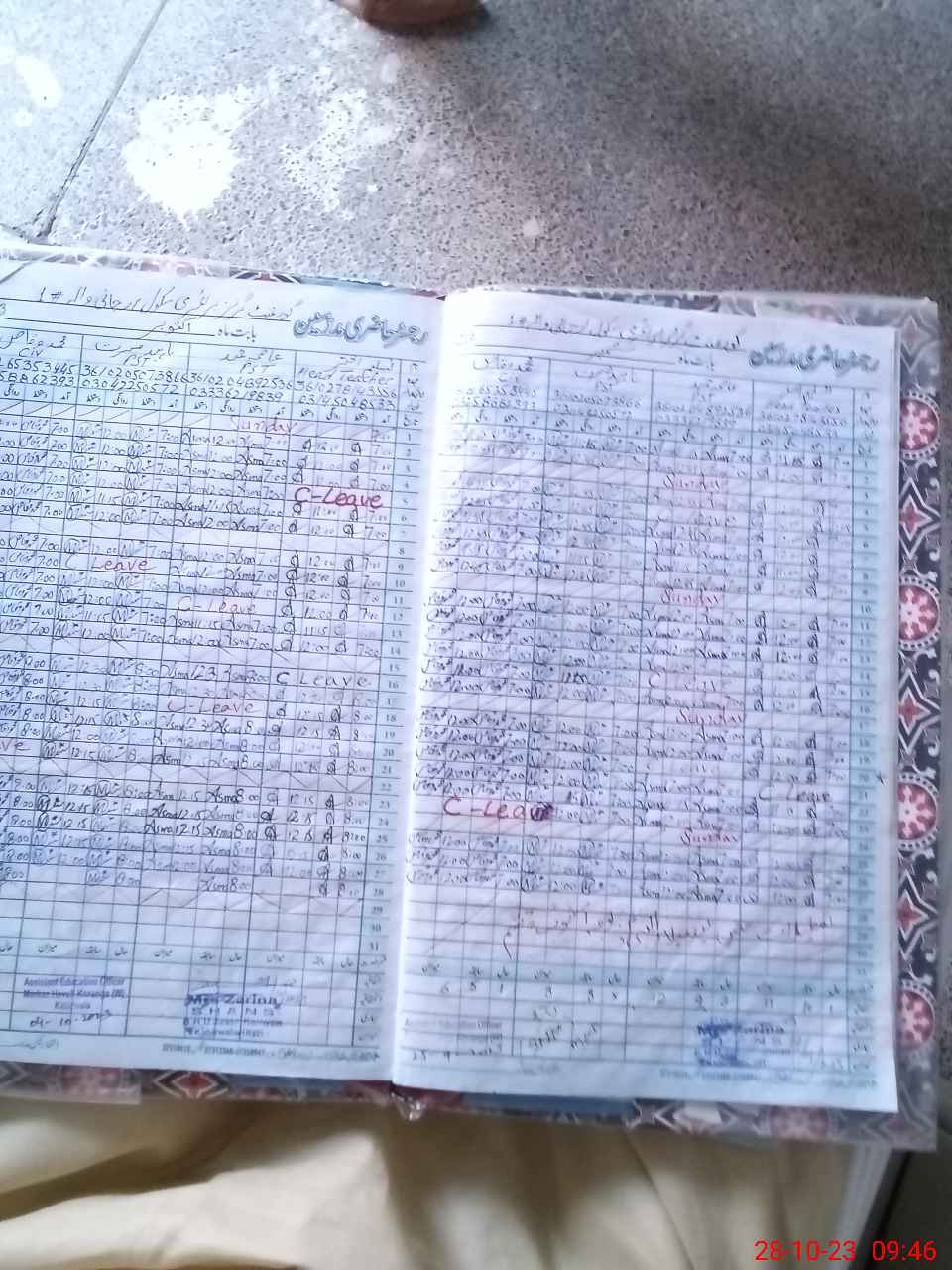 | CNIC | Full Name | Designation | R/C | Absence During Last Calender Month |
