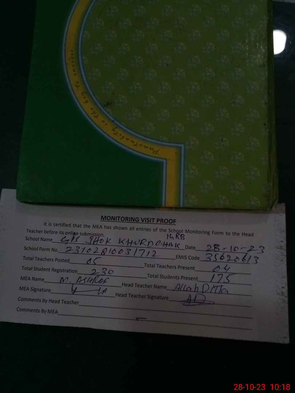 | EMIS Code: 35620613 | Name of School: GPS JHOK KHURD CHAK NO. 14/RB | |||