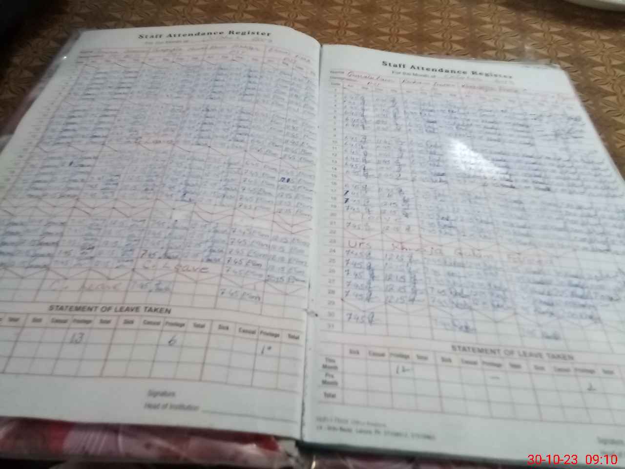 | Leave | Duty | Absent | Maternity | Medical | Ex- Pak |