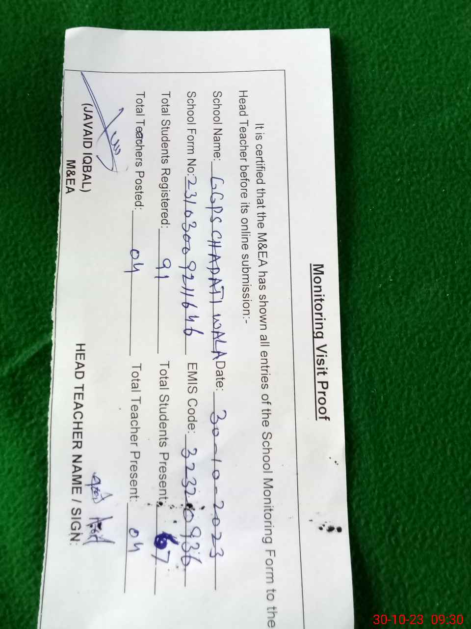 | EMIS Code: 32320936 | Name of School: GGPS CHAPATI WALA (BABA TEND DARBAR) | |||