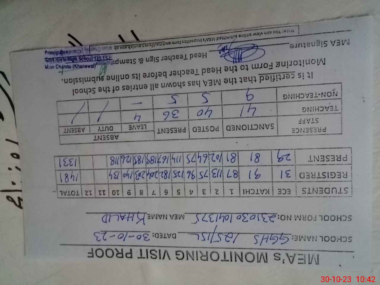 | EMIS Code: 36430043 | Name of School: GGHS 125/15-L, MIAN CHANNU | |||