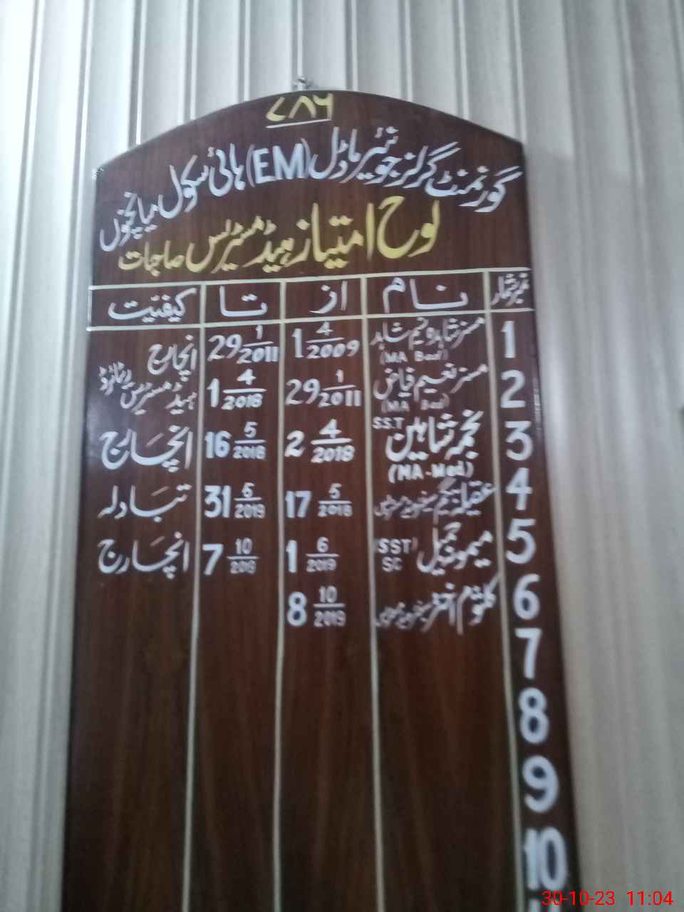 | EMIS Code: 36430075 | Name of School: GGHS JUNIOR MODEL MIAN CHANNU | |||