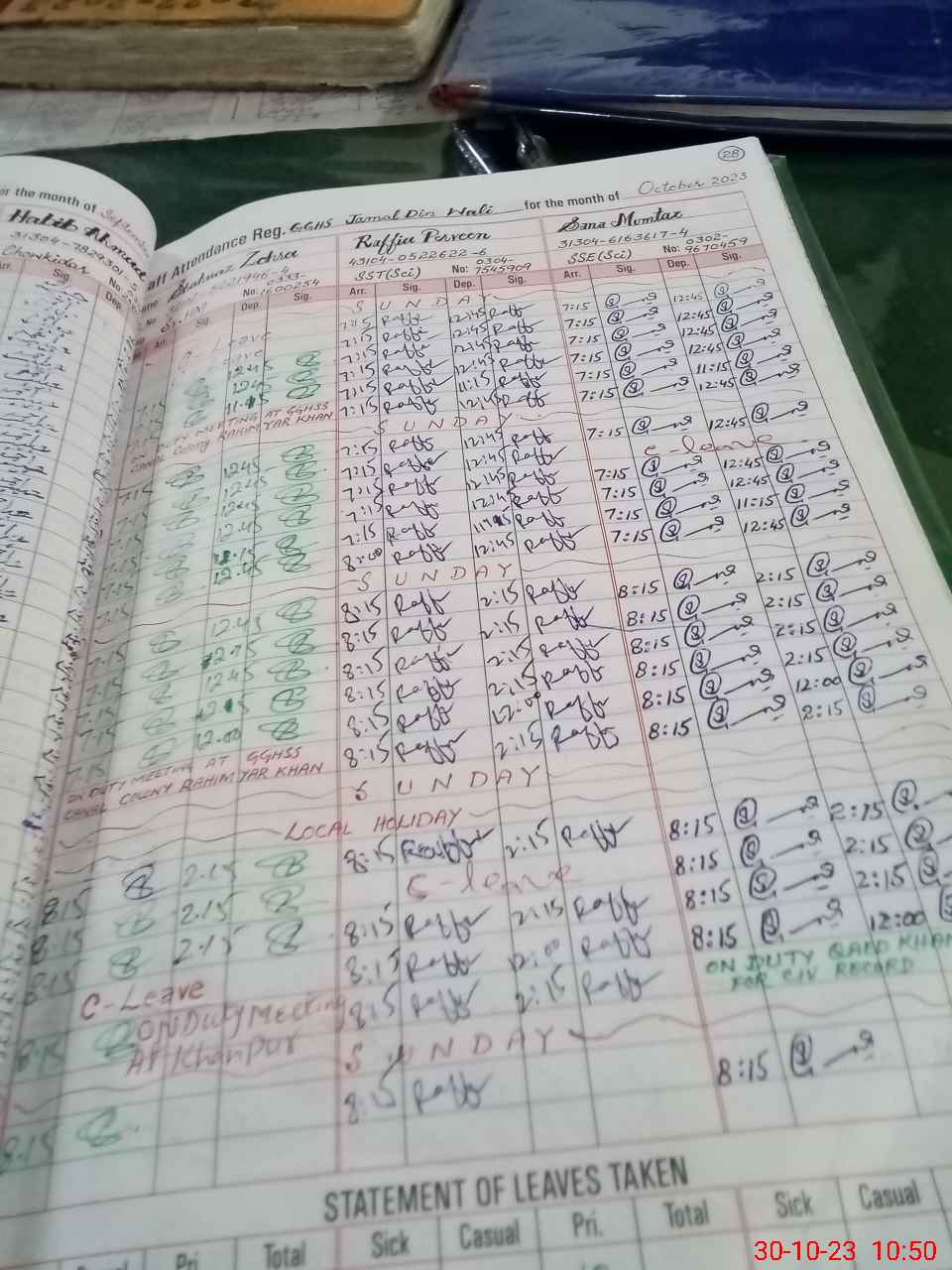 | Leave | Duty | Absent | Maternity | Medical | Ex- Pak |
