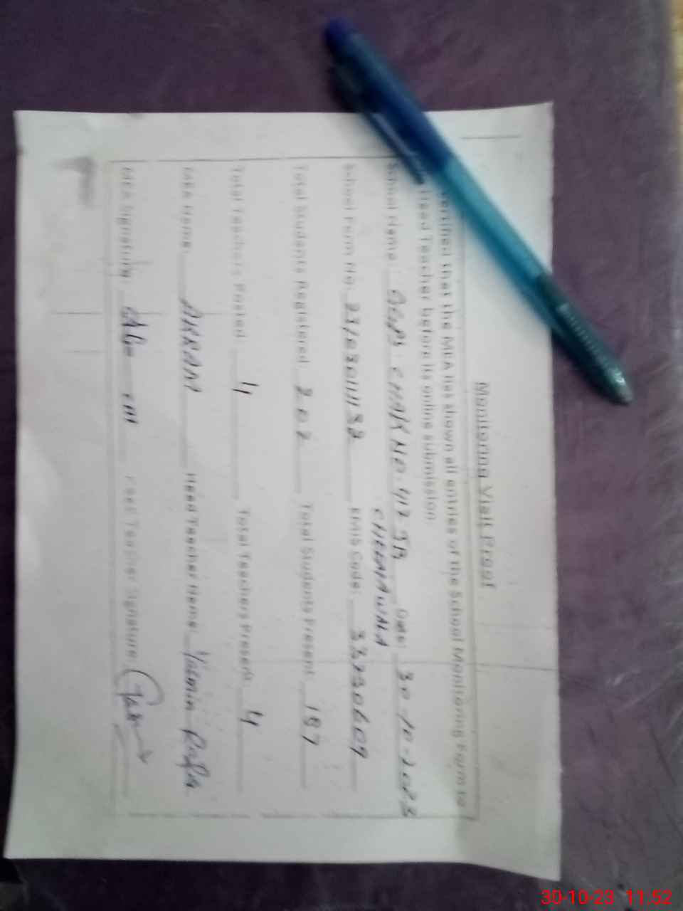 | Attendance Register | Head Teacher | MEA with School | Visit Proof |