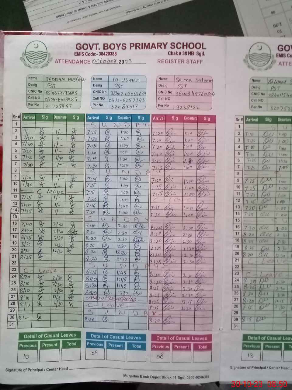 | Name: SA**** HU**** Designation: (School Headmaster's/Headmistress's) PST Phone/Cell Number: 03**** |