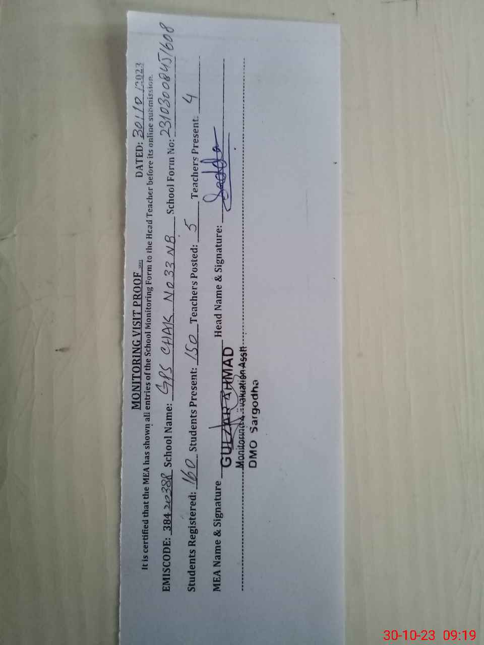 | EMIS Code: 38420388 | Name of School: GPS CHAK NO.33 NB | |||