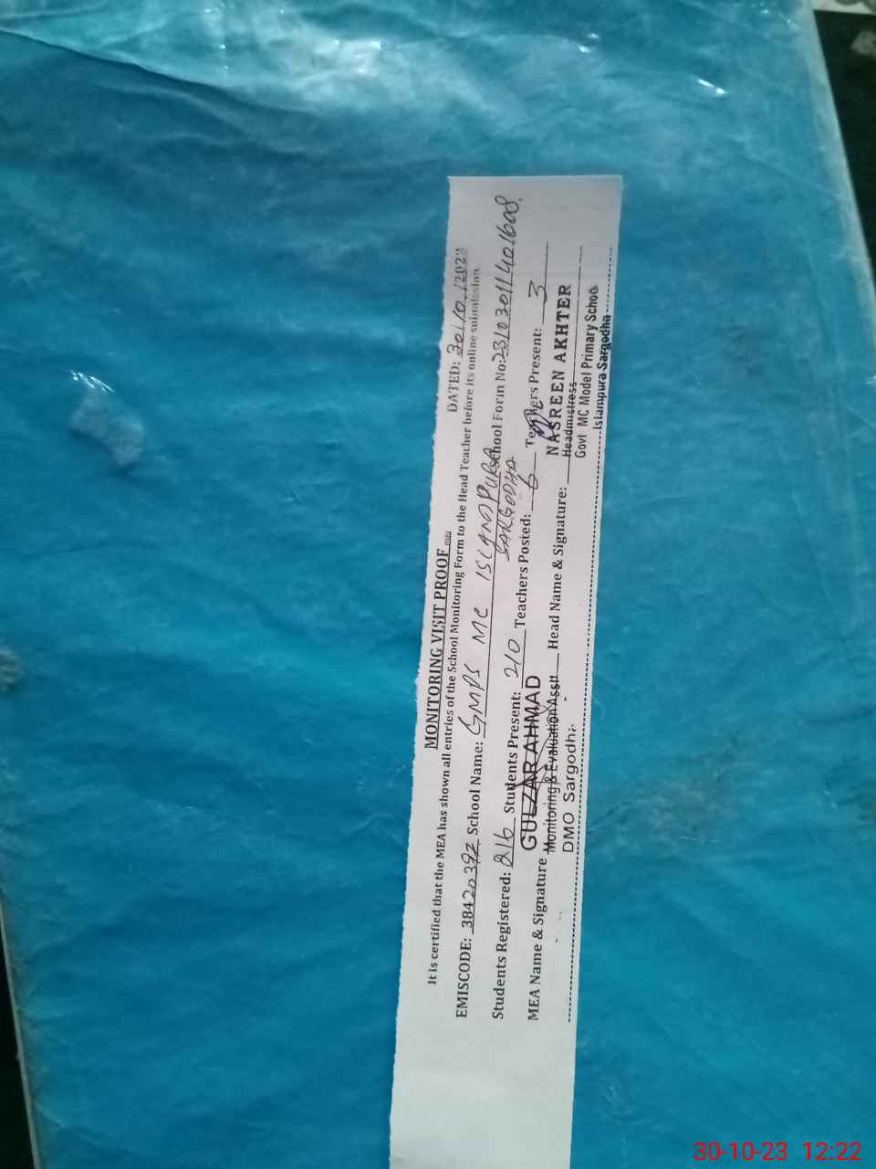 | EMIS Code: 38420397 | Name of School: GMPS MC ISLAM PURA SARGODHA | |||