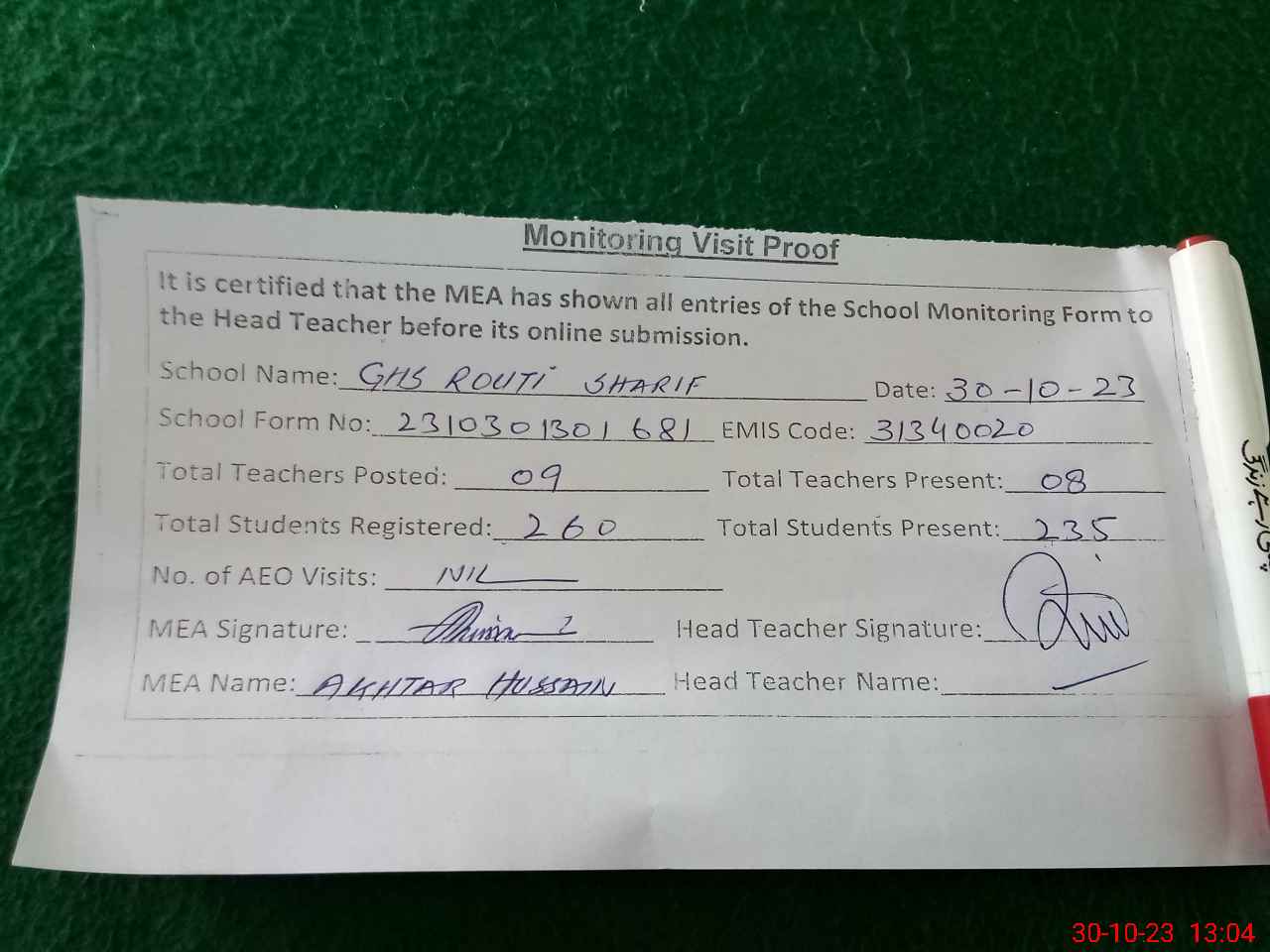 | EMIS Code: 31340020 | Name of School: GHS ROUTI SHARIF | |||