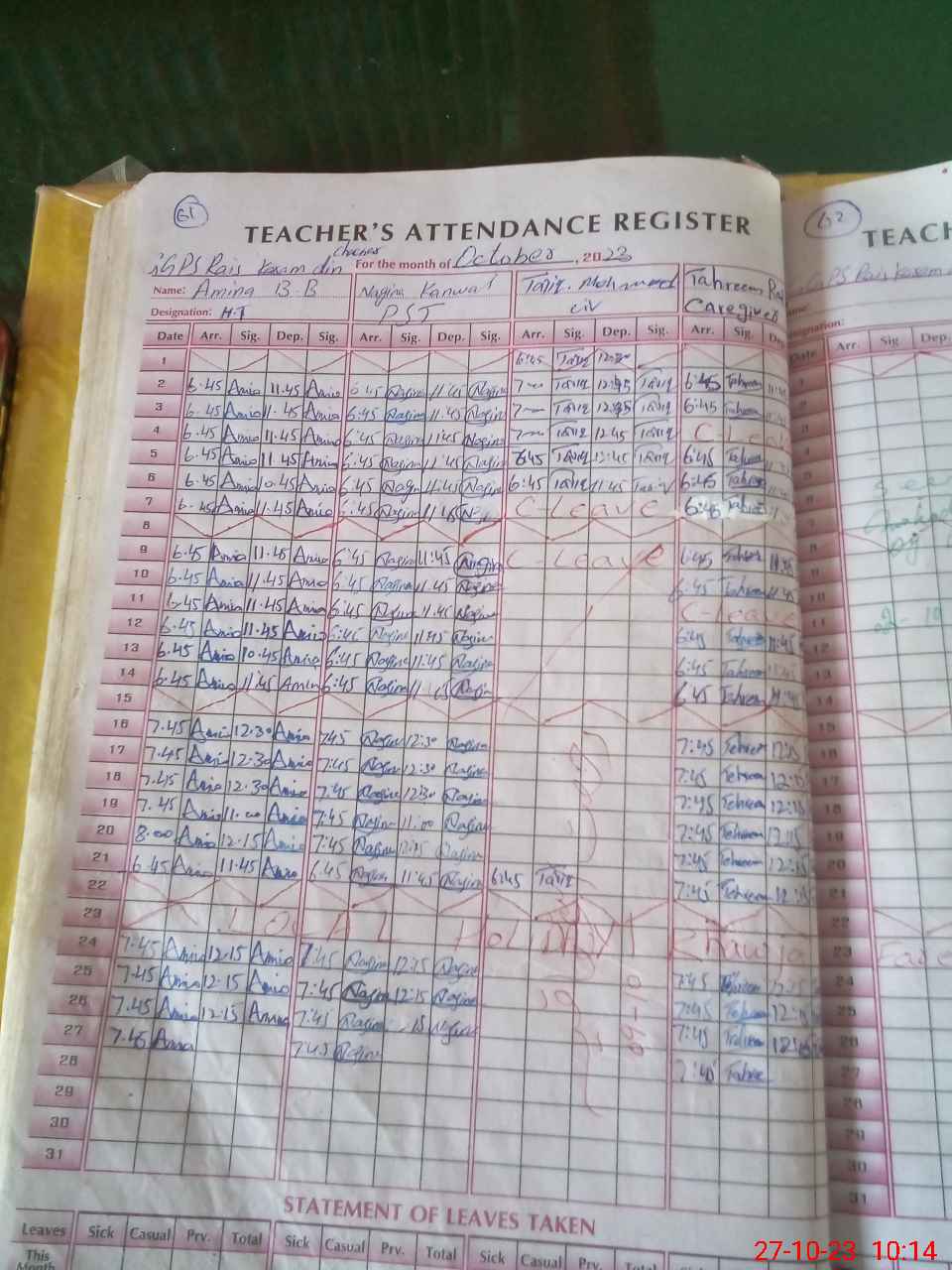 | 31**** | Ta**** Me**** | NAIB QASAD | Regular | 0 | 0 | 0 | 0 | 0 | 0 | 0 | 0 | 0 | Earned |