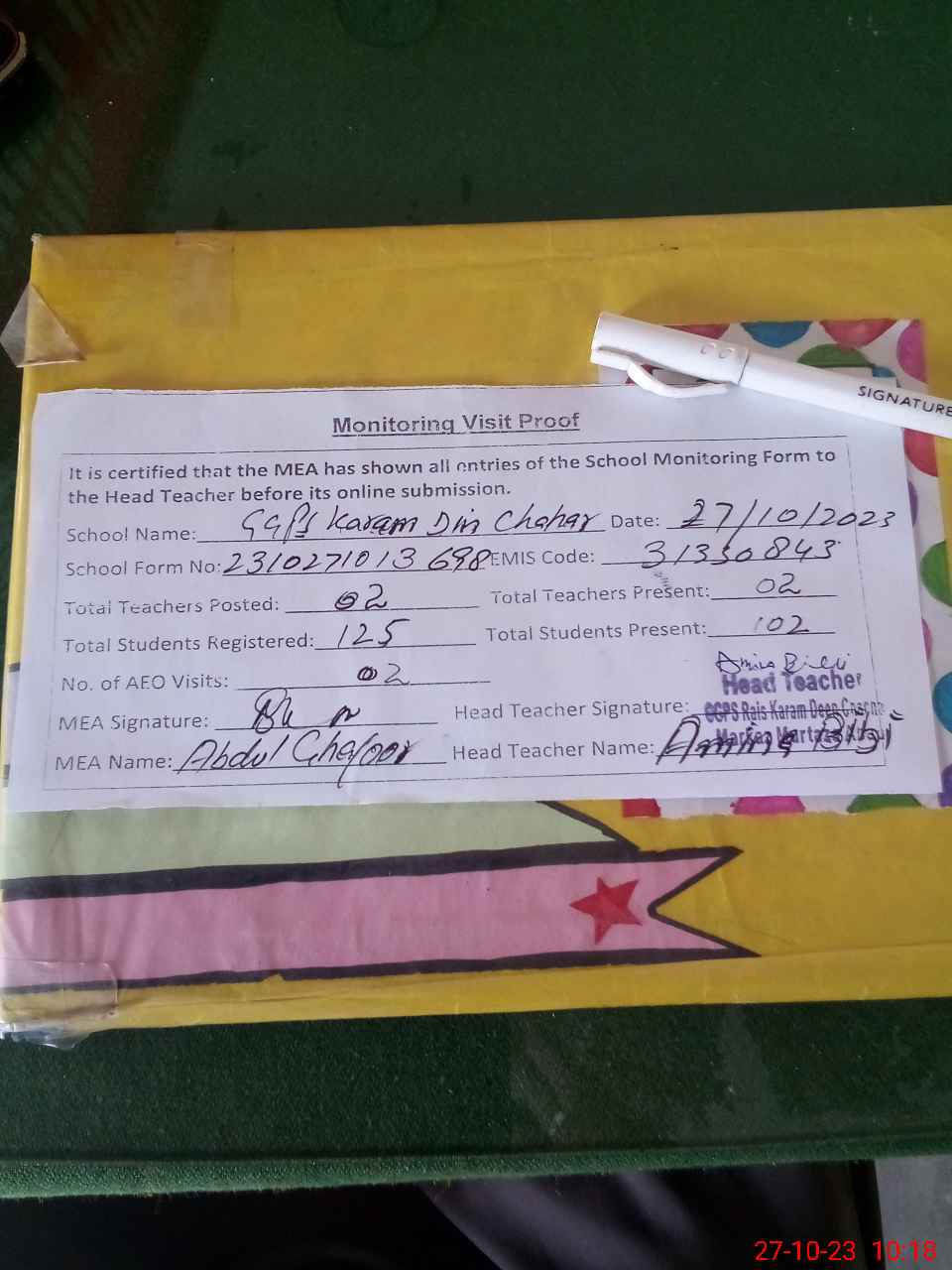 | EMIS Code: 31330843 | Name of School: GGPS RAEES KARAM DIN CHACHAR | |||