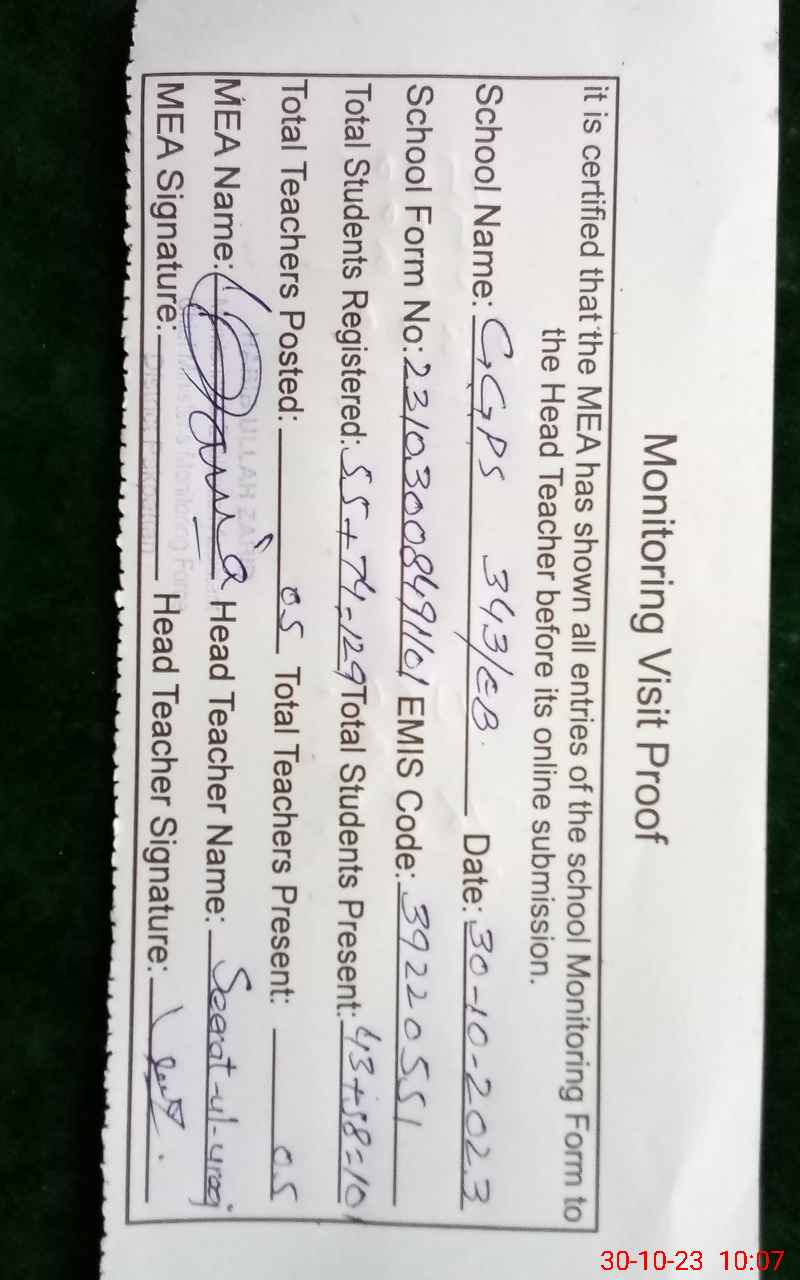 | Certified that this School was Inspected by the Undersigned MEA/DMO Today and the Information Stated Above is as Per Record. | |||||