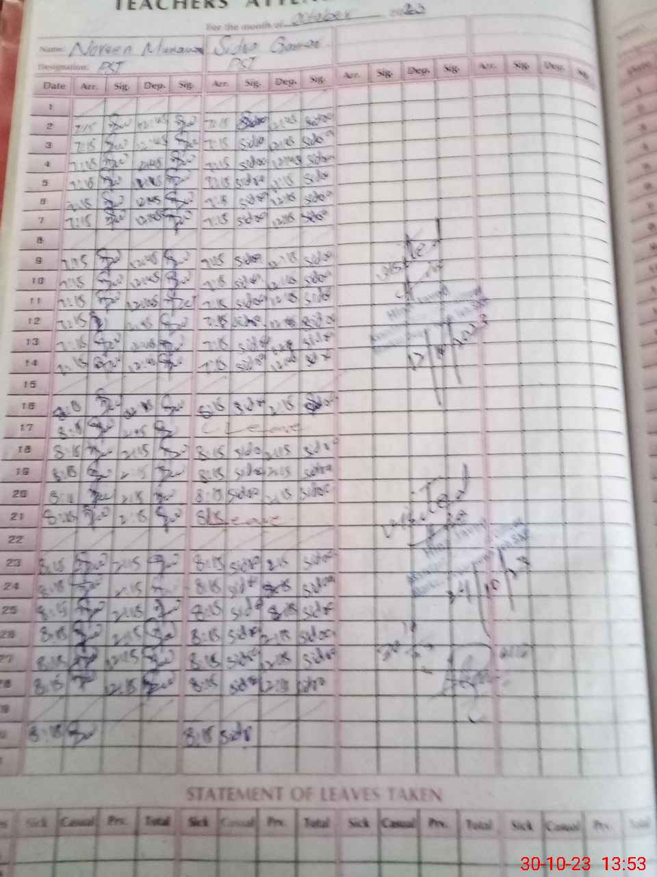 | Name: NO**** MU**** Designation: (School Headmaster's/Headmistress's) PST Phone/Cell Number: 03**** |