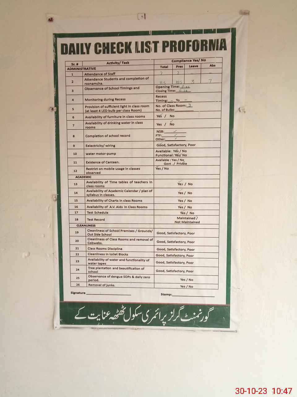 | Certified that this School was Inspected by the Undersigned MEA/DMO Today and the Information Stated Above is as Per Record. | |||||