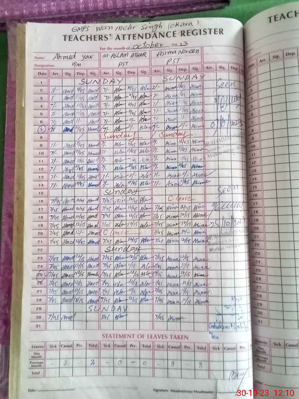 | Name: Ah**** Ya**** Designation: (School Headmaster's/Headmistress's) PST Phone/Cell Number: 03**** |