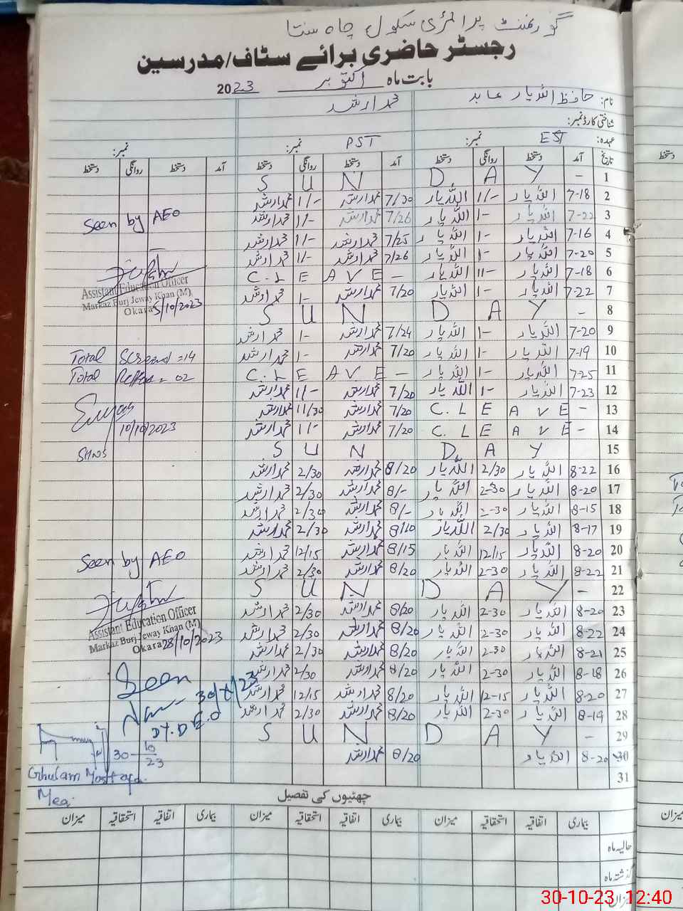 | Name: HAl**** Ya**** Ab**** Designation: (School Headmaster's/Headmistress's) EST Phone/Cell Number: 03**** |