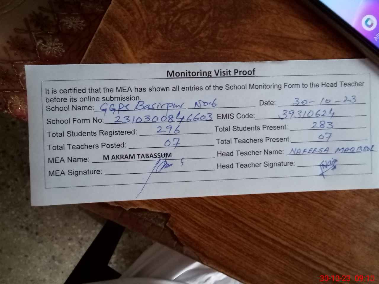 | EMIS Code: 39310624 | Name of School: GGPS BASIR PUR NO 6 | |||