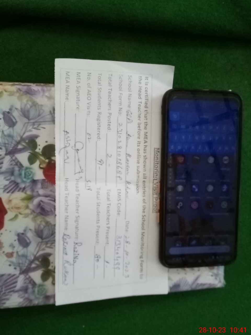 | Attendance Register | Head Teacher | MEA with School | Visit Proof |