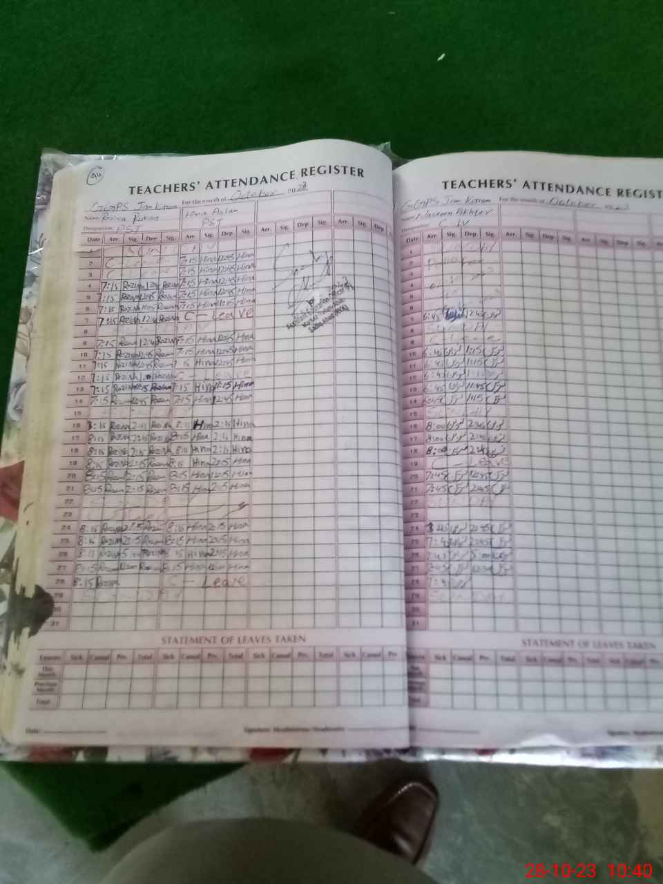 | Leave | Duty | Absent | Maternity | Medical | Ex- Pak |