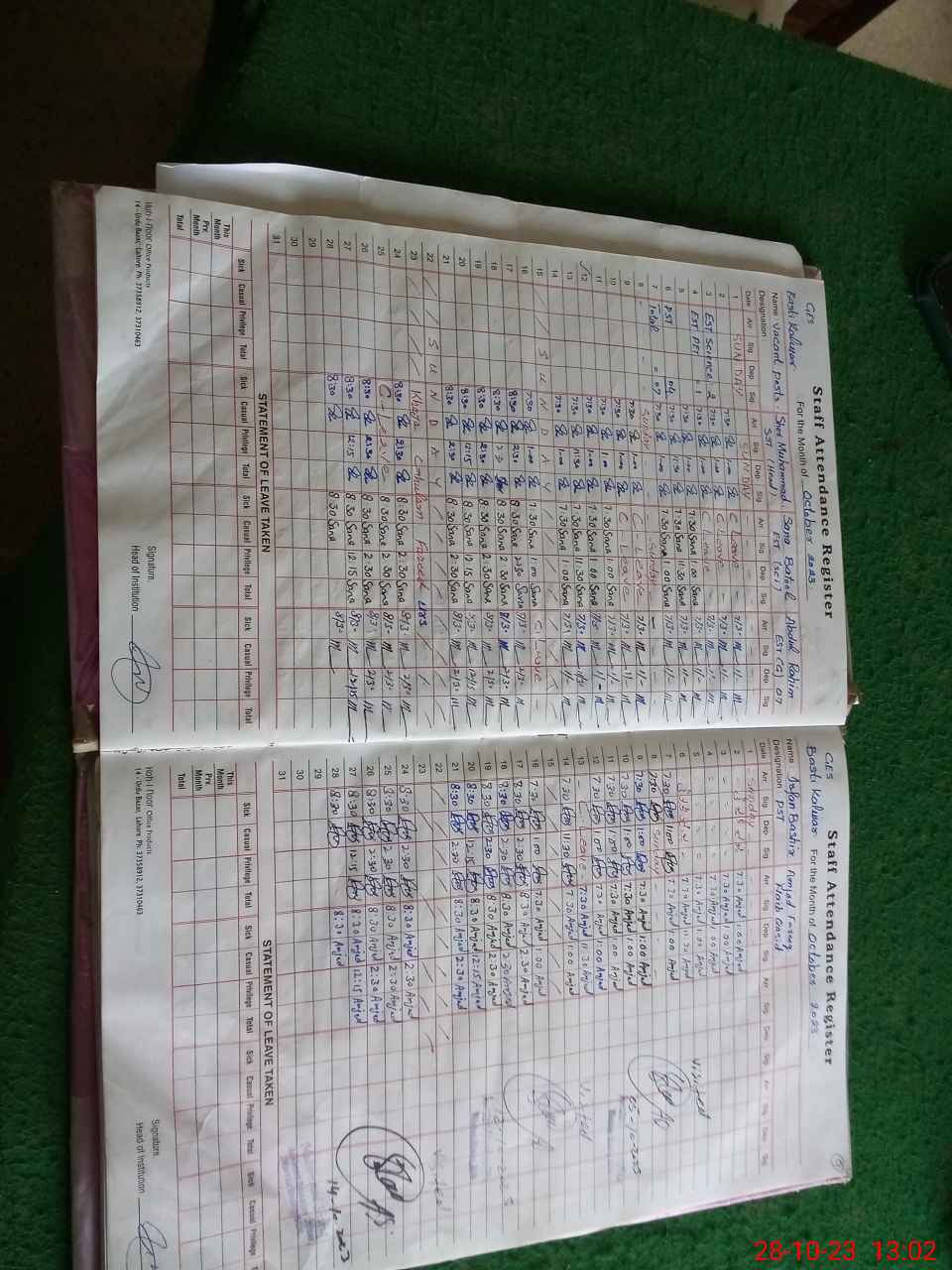 | CNIC | Full Name | Designation | R/C | Absence During Last Calender Month |