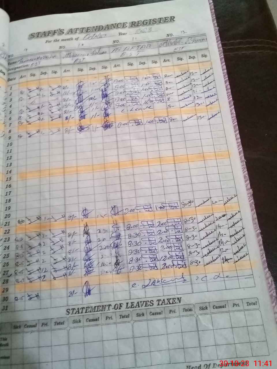 | 37**** | Ab**** Re**** Ab**** | Regular | 0 | 0 | 0 | 0 | 0 | 0 | 0 | 0 | 0 | Absent (Un-Authorized) | |